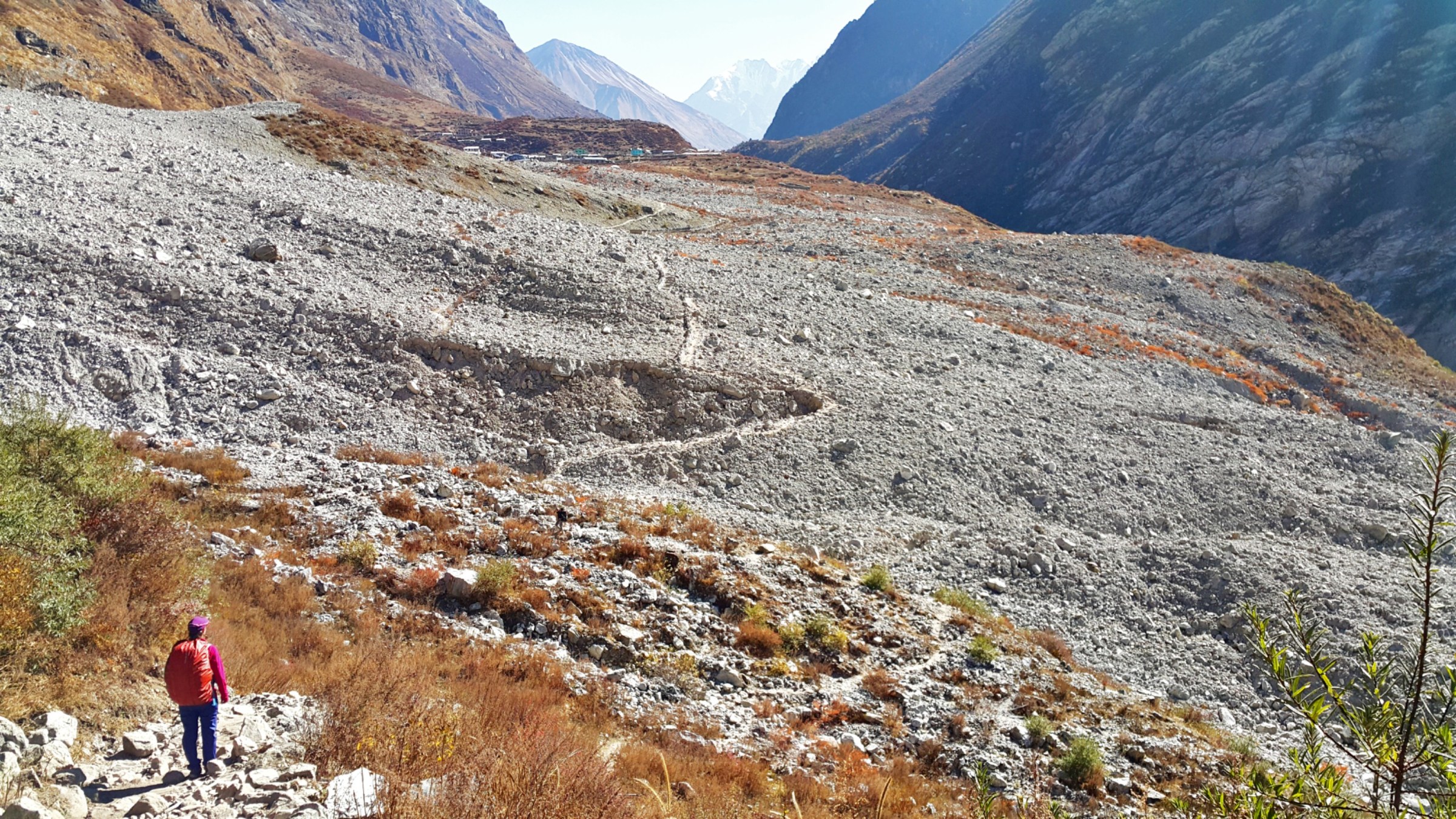 Una de las zonas más castigadas por el terremoto fue el valle de Langtang, donde murieron 300 personas, entre gente local, guías, porteadores y turistas. Nosotros acabamos de volver de nuestros 7 días de trekking por el valle y todavía, 3 años después, hemos podido ser testigos del horror que vivió aquella gente. A lo largo del valle nos hemos encontrado con grandes desprendimientos de rocas de las montañas, que dificultaba en muchas ocasiones el paso. El mayor desprendimiento fue el que cayó del pico Langtang Lirung. El seísmo hizo que el glaciar se rompiera y cayó en forma de avalancha con una fuerza descomunal que arrasó con todo lo que encontró a su paso. El pueblo de Langtang quedó totalmente sepultado, quedando reducido a un amasijo de barro y piedras que cubría edificios y personas.