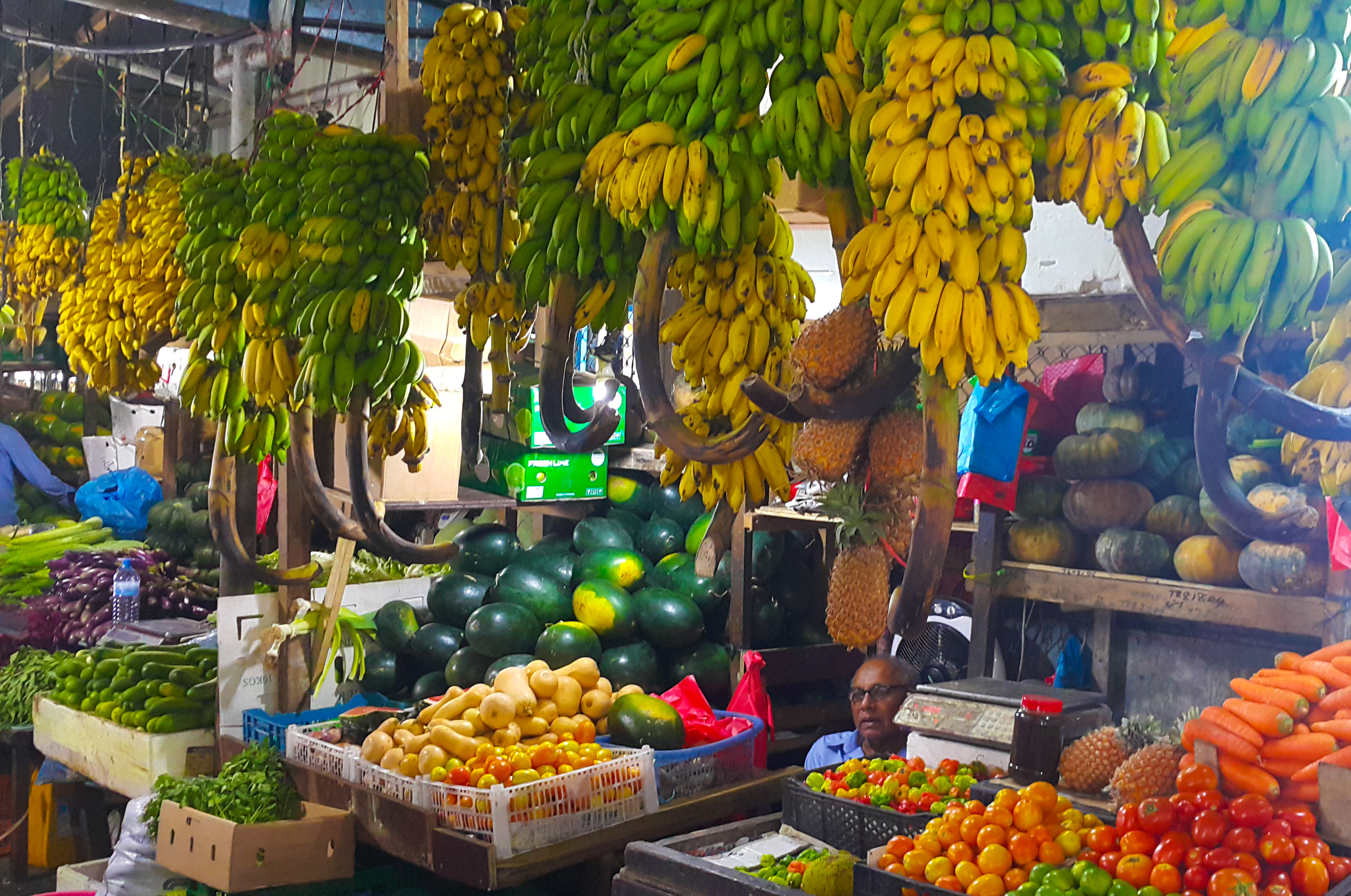 Al lado del mercado del pescado está este otro mercado local. Está repleto de pasillos llenos de colorido con sus frutas y verduras. Puedes comprar aquí fruta y llevártela a las islas porque allí no venden… Nosotros solo nos compramos unos plátanos y unas naranjas. Tiene delito, con la de frutas tropicales y exóticas que había! También se pueden encontrar otros productos locales como azúcar de coco o pescado seco.
