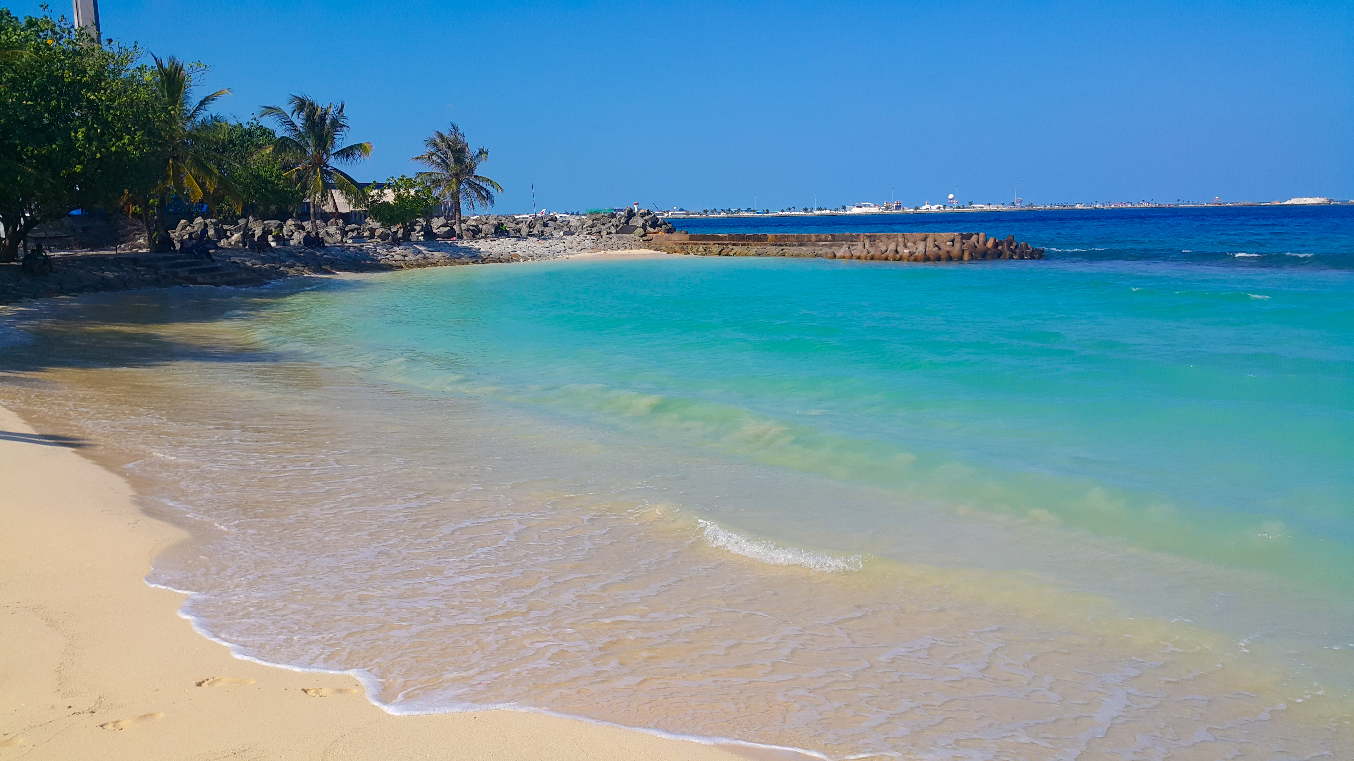 En Male no hay playa, vaya vaya! Así que han hecho una playa artificial para poder refrescarse. Aquí uno se puede bañar cualquier siempre y cuando vaya tapado. Vamos, que nada de ir en bikini. Recuerda que es un país musulmán.