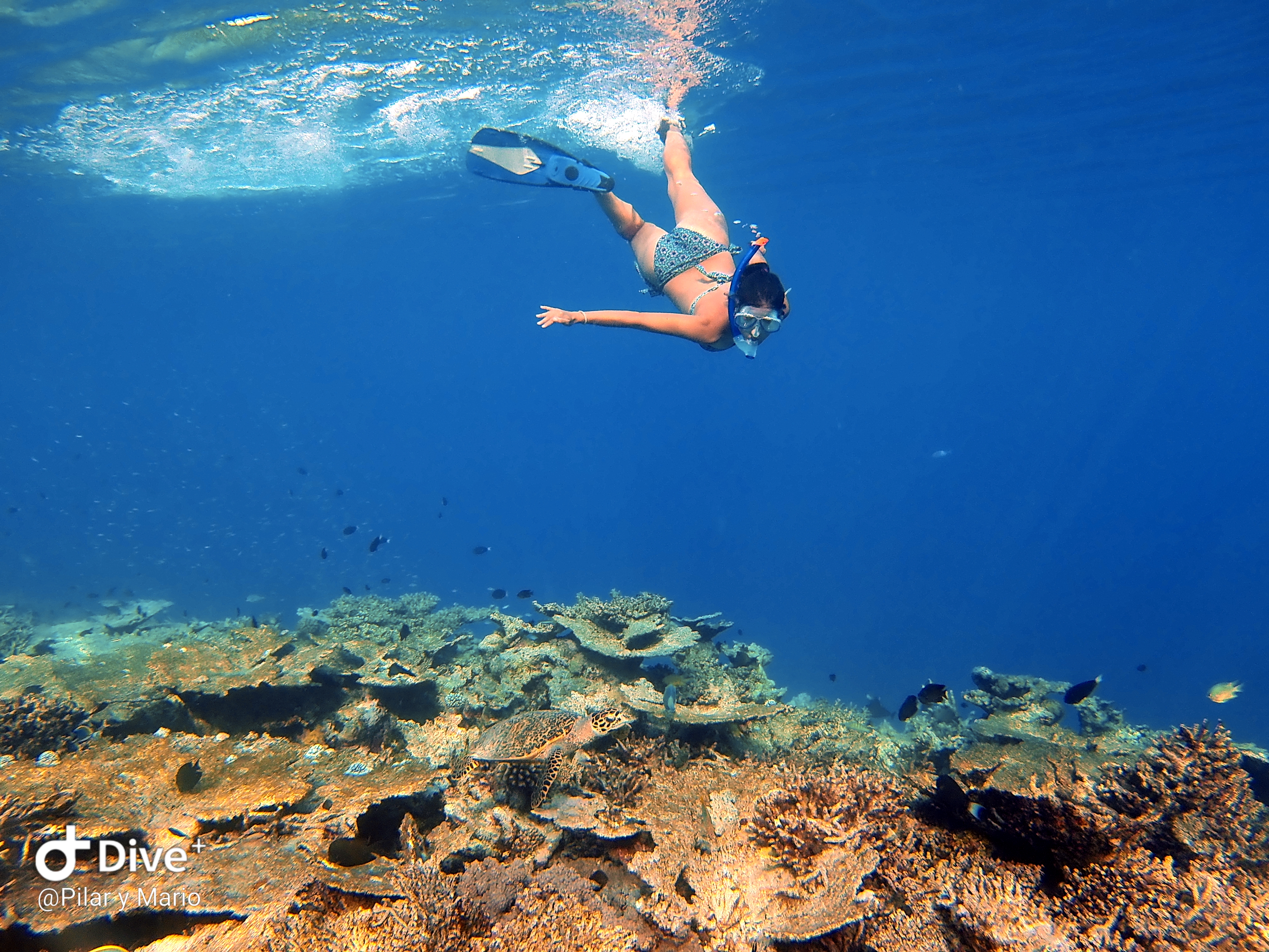 Muy cerca de la isla, yendo en barco, hay una zona para hacer snorkel que nos pareció muy bonita. Aquí pudimos ver un montón de tortugas y pececitos de colores grandes y pequeños. Y sobre todo coral y formaciones rocosas bajo el agua. La mayor parte de coral de toda esta zona está muerto a causa del aumento de la temperatura del agua, pero se empiezan a ver brotes nuevos de colores que van naciendo.
