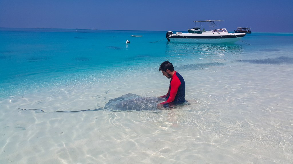 EXCURSIONES EN FULIDHOO: Hicimos una excursión que entraba nadar con los tiburones nodriza, el banco de arena y el snorkel en la zona en la que vimos las tortugas. La excursión duró 3 – 4 horas, fuimos en un barco pequeño 6 personas en total y disfrutamos un montón porque pudimos estar en cada sitio casi todo el tiempo que quisimos. Fue, sin duda, la excursión que más disfrutamos y la recomendamos 100%. La cogimos con el mismo chico de nuestro hotel Seena Inn y pagamos solo 40$ por persona (la excursión a ver los tiburones nodriza desde Maafushi costaba unos 60$). Si te interesa puedes contactar con Seena Inn aquí.