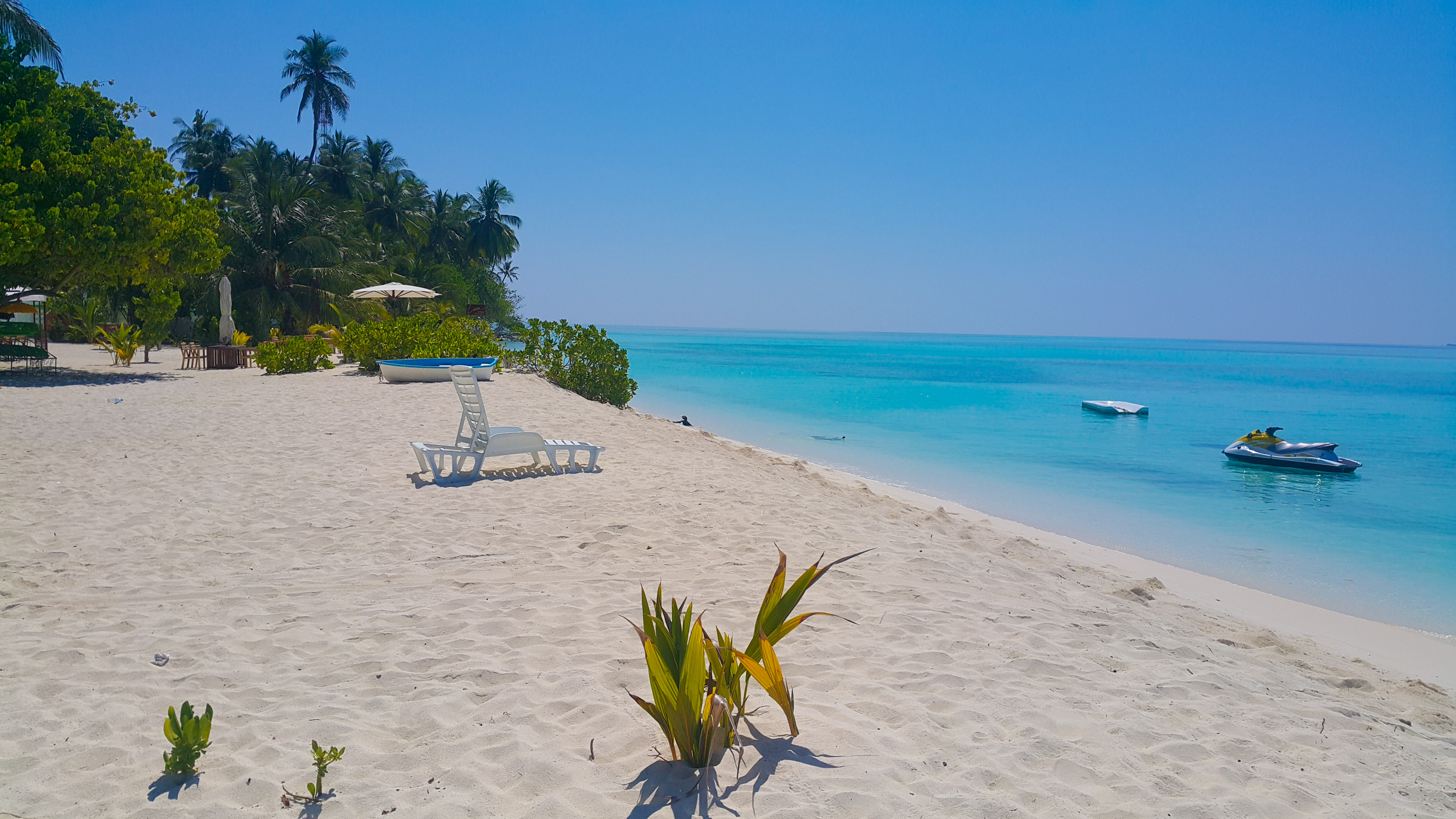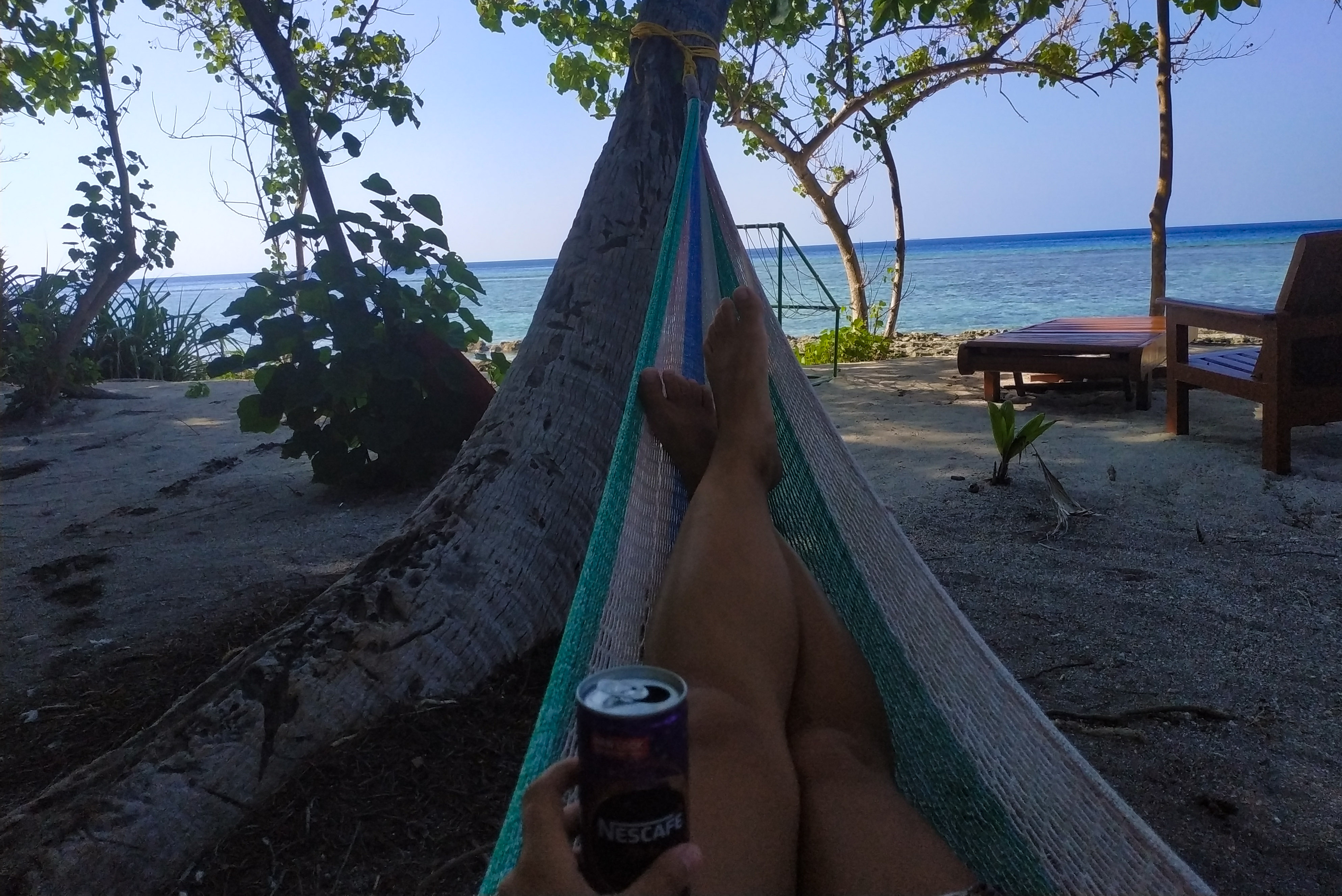 Como ya hemos dicho en otros posts en las islas locales no está permitido bañarse en playas que no sean «bikini beach». En Fulidhoo la bikini beach es pequeñita pero muy bonita. Con arena blanca, palmeras y una tranquilidad en el agua increíble. Además está muy bien preparada con sus hamacas y un columpio. El único problema, por buscarle uno, es que al ser tan pequeñita si coincides con algún turista más puede parecer que esté abarrotada.