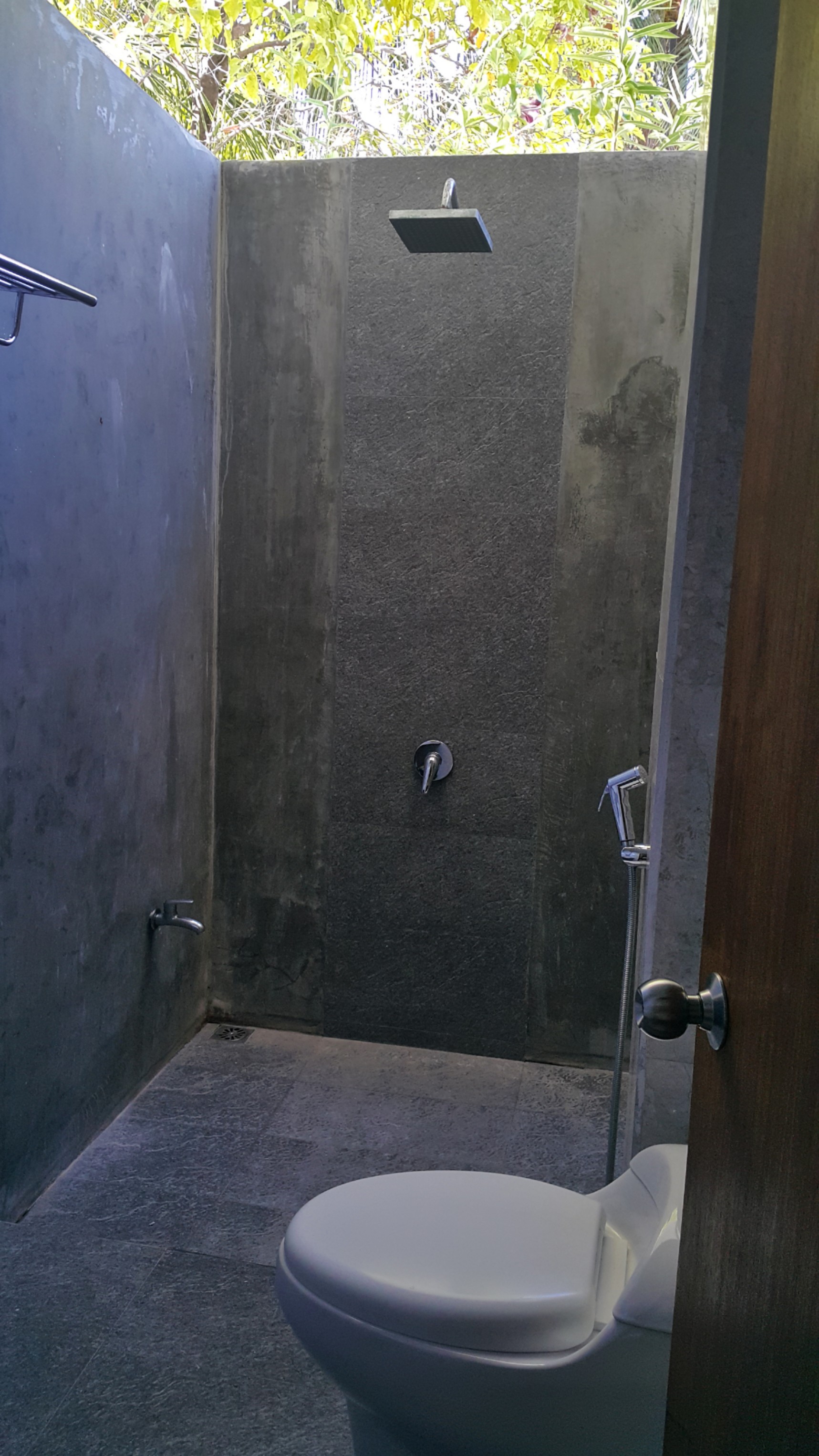 Lo que más nos gustó fue el baño, porque era un concepto totalmente diferente. Era un baño muy grande y abierto, un poco al estilo balinés. La ducha era de piedra y tenía varias salidas de agua. Nos gustó mucho.