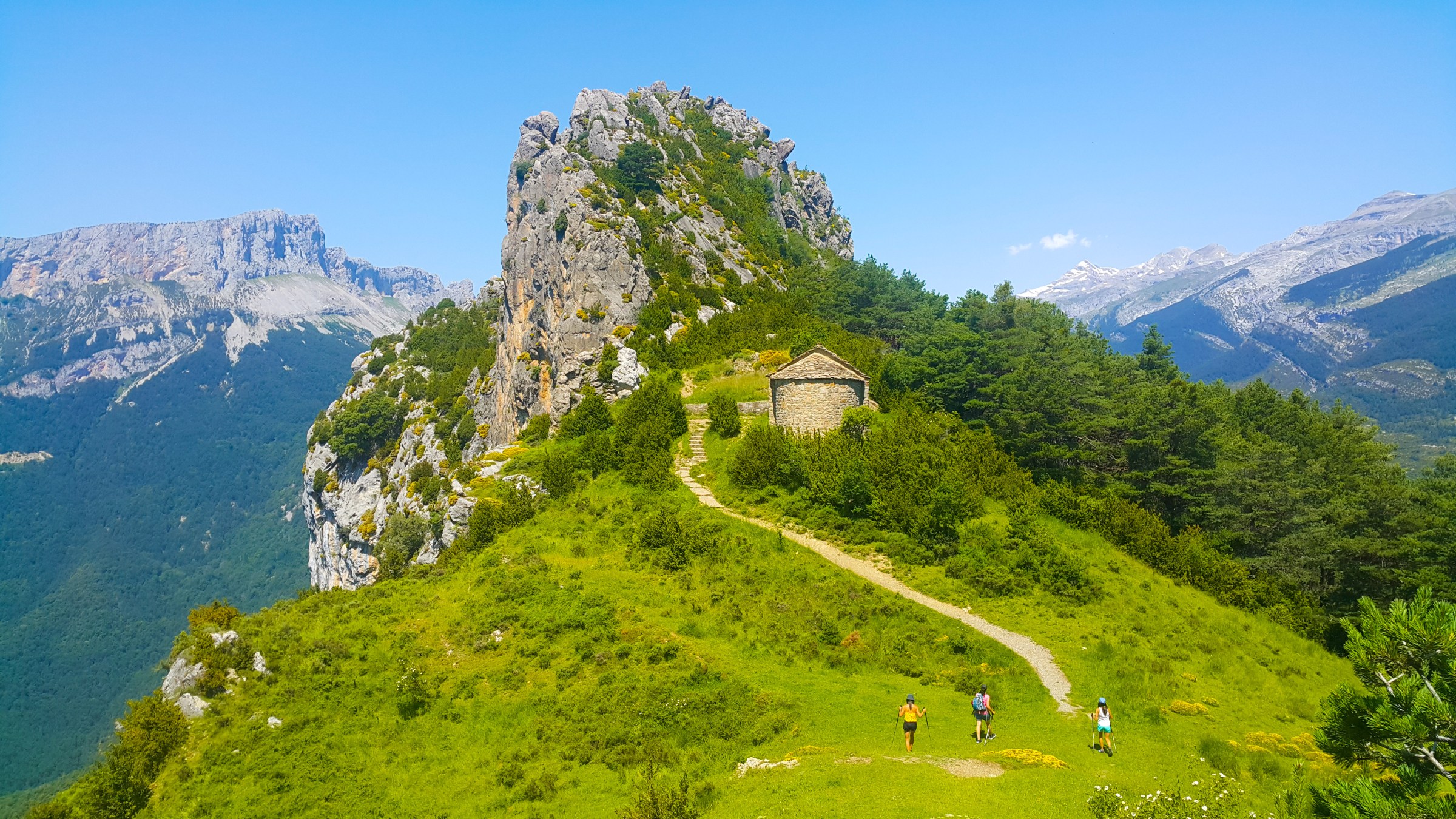 Volviendo al sendero principal hay un camino que te lleva hasta las otras dos ermitas. A la izquierda está la Ermita de la Virgen de las Fajanillas, de origen románico. ¿Sabes por qué tiene ese nombre tan raro? En Aragón una fajanilla o una fajana es una faja estrecha de terreno que puede aparecer de forma natural en la ladera de un peñasco o ser construida por el hombre para el cultivo. Así que esta Virgen hace honor a la forma de la tierra donde es venerada.