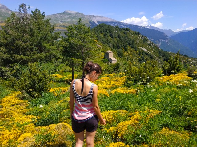 Nosotros llegamos a Tella desde Aínsa, que es el pueblo donde nos estábamos alojando. Hay que coger la carretera en dirección a Bielsa y Francia y una vez se llega a Escalona hay que seguir recto (si coges el camino de la izquierda se llega a otros lugares como el Cañón de Añisclo). Justo después de un pueblo llamado Hospital de Tella hay un desvío a la izquierda que nos llevará a nuestro destino. Está bien señalizado con la indicación «Ruta de las Ermitas». Justo al llegar al pueblo hay un aparcamiento donde se puede estacionar el coche sin problema.