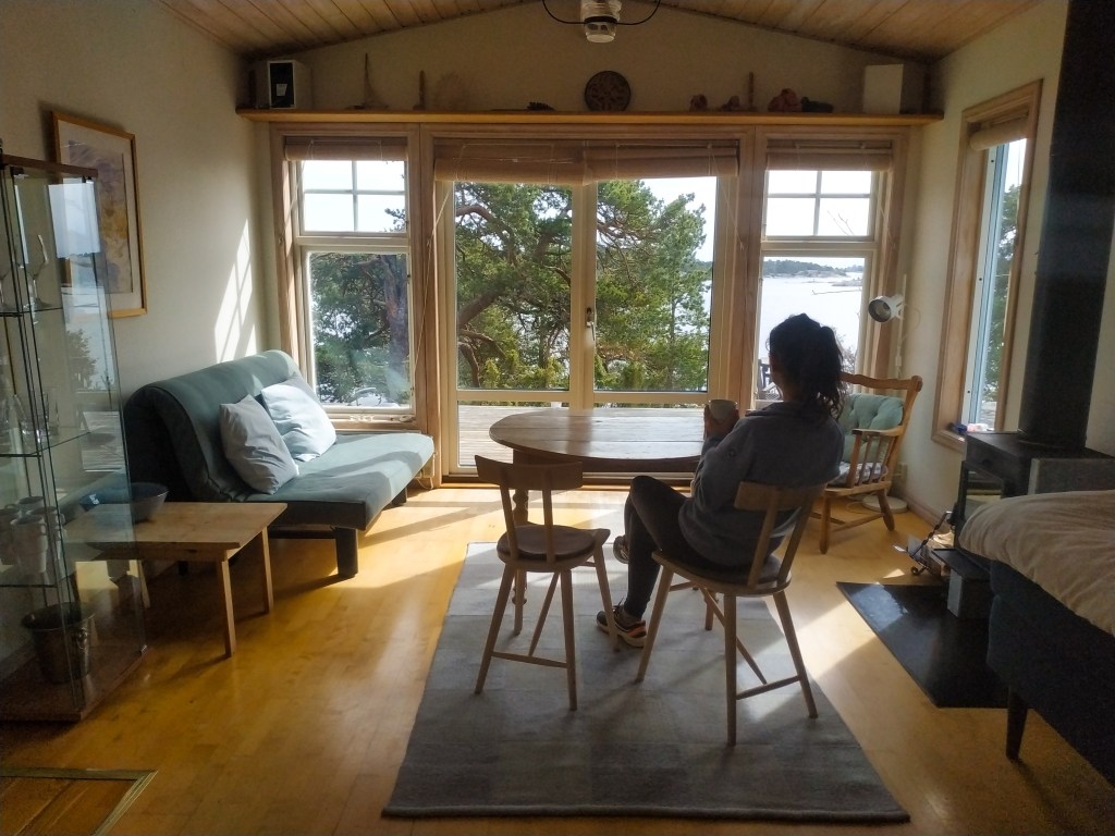 En la isla también hay una sauna que es posible reservar durante el día para usar durante una hora y media. Es totalmente nueva, con vistas al archipiélago, y si eres valiente puedes salir y tirarte a las heladas aguas del Mar Báltico, como hacen los suecos (y como hizo Mario 😉 ).