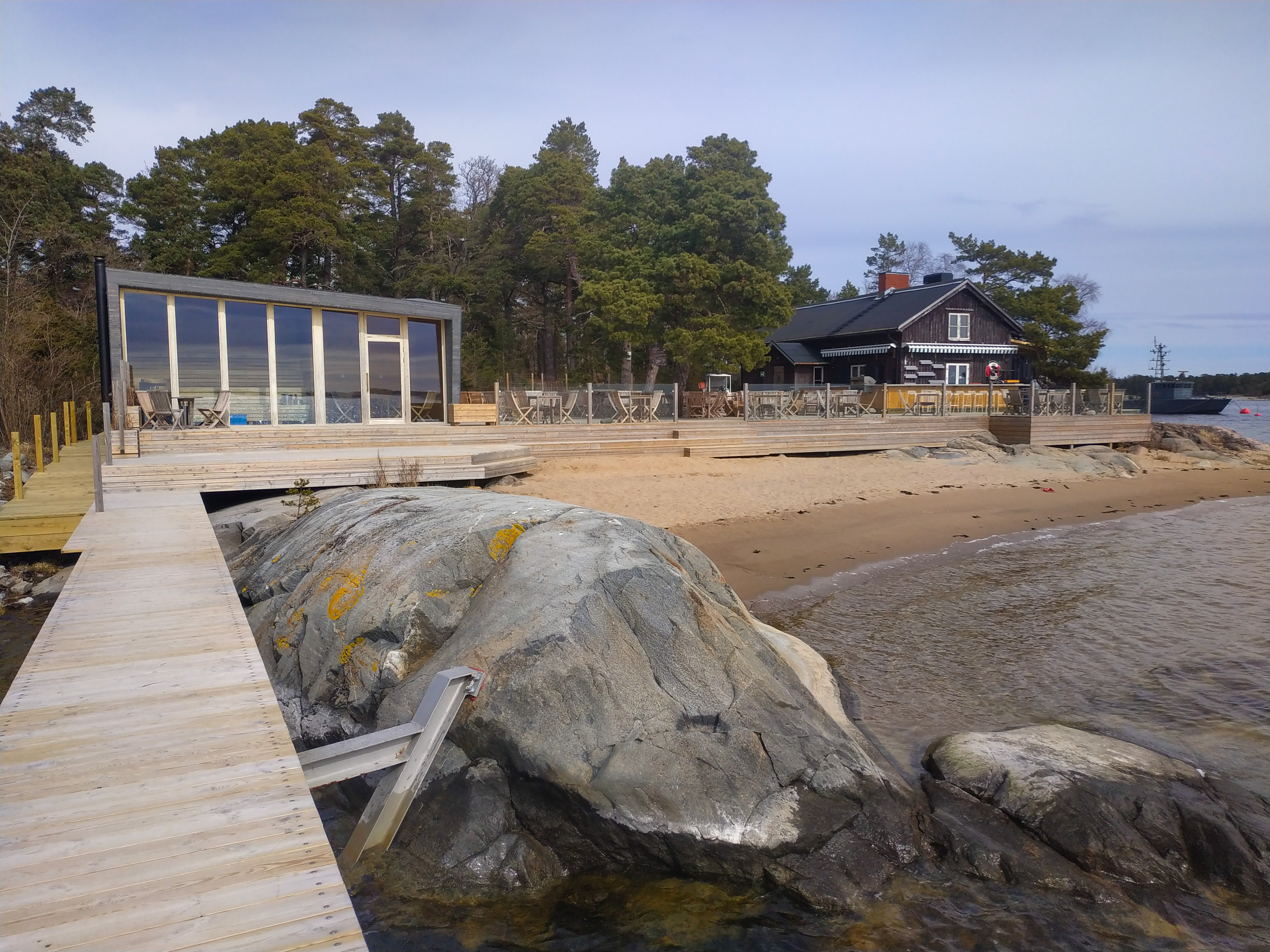 Cuando empieza el buen tiempo, a partir de mayo, la isla tiene más posibilidades. Se pueden alquilar kayaks e ir a islas cercanas que están deshabitadas, nadar en el mar y tomar el sol en la pequeña playa que hay delante del restaurante.