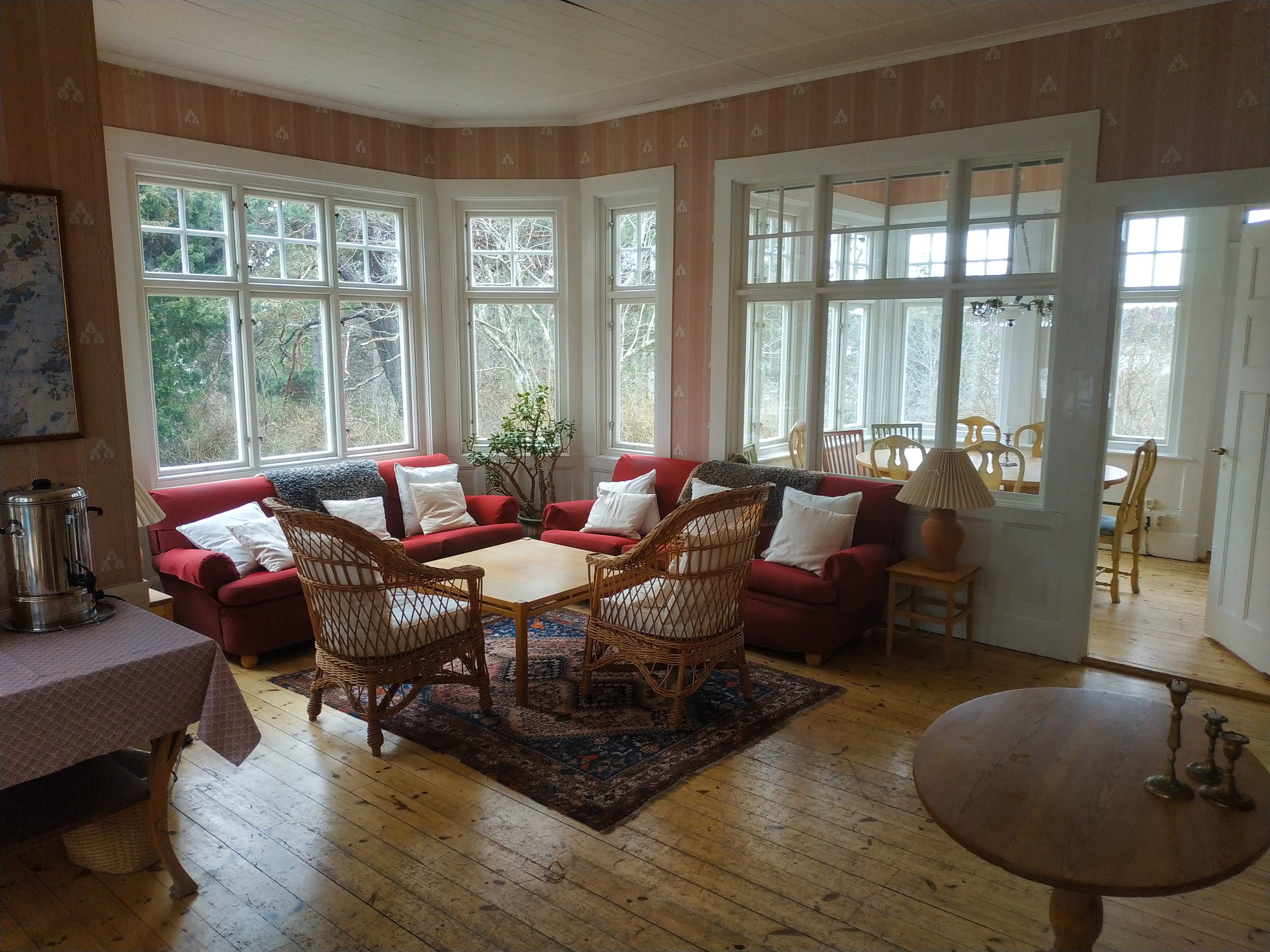 En cuanto a la comida, durante la temporada alta hay un bar restaurante que abre por las tardes-noches. Pero además todas las casas tiene su cocina propia y es muy cómodo para poder cocinar tu propia comida. Hay que tener en cuenta que en la isla no hay ninguna tienda, así que es necesario traer de Estocolmo todo lo que necesites. Cerca de la estación de autobús de Slussen hay supermercados para comprar. En el caso de que vinieras a hacer un retiro de yoga, la comida os la cocinarían en la propia cocina de la casa donde te alojaras.