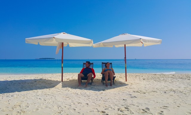 La mejor época para viajar a Maldivas es de noviembre a abril aproximadamente. Durante estos meses las temperaturas rondan los 20-30 grados y la probabilidad de lluvias es baja, por lo que el mar está calmado y la visibilidad del agua es muy buena para hacer snorkel o buceo. De mayo a octubre es época de monzón, que se traduce en lluvias intermitentes casi cada día. El final de nuestro viaje a Maldivas coindició con la entrada del monzón y nos llovió todos los días. Te aseguramos que el viaje no es lo mismo.
