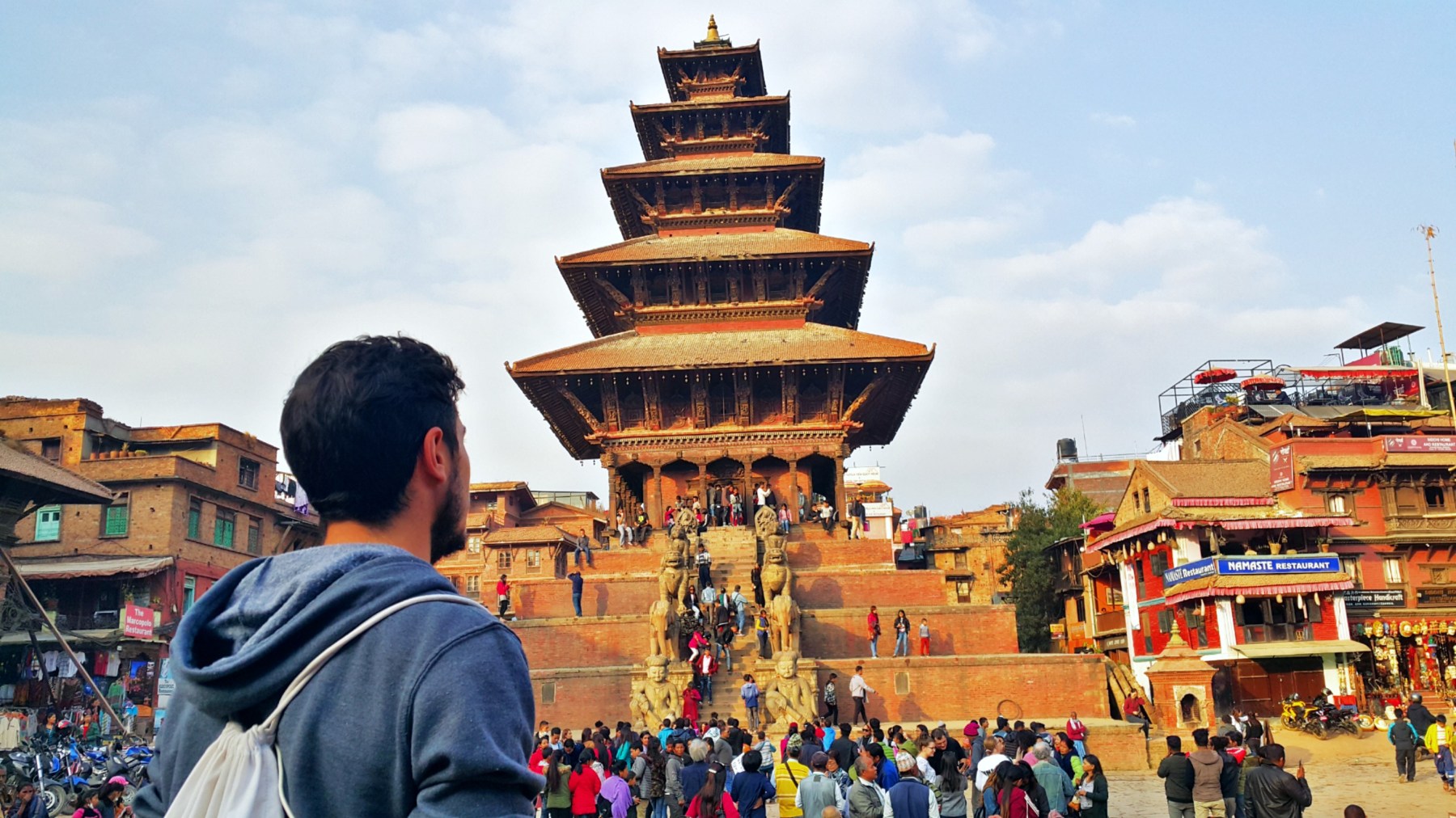 Bhaktapur en una ciudad situada a solo 15km al este de Katmandú. A pesar de estar tan cerca, no tiene la nada que ver con la capital. Bhaktapur es una ciudad super tranquila, en la que el tiempo pasa lentamente, sin caos, sin contaminación, sin polvo y con un centro histórico de esos que te dejan sin palabras. Su situación geográfica, a lo largo de la ruta comercial entre India y el Tibet, le dio a la ciudad un gran estatus y durante mucho tiempo fue la capital de Nepal, en concreto entre los siglos XII y XV, momento en el que gobernaba la dinastía Malla. Por eso, está repleta de templos, palacios y edificios majestuosos que hicieron que la UNESCO le otorgara el título de Patrimonio de la Humanidad en 1979.